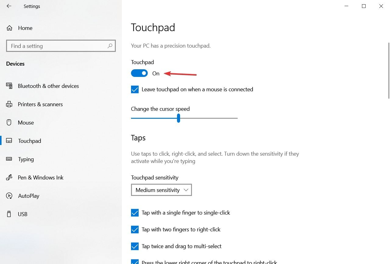 Откройте Пуск → Параметры → Устройства → Тачпад.