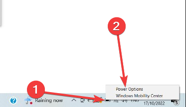 - Щёлкните правой кнопкой по значку батареи и выберите Параметры питания.