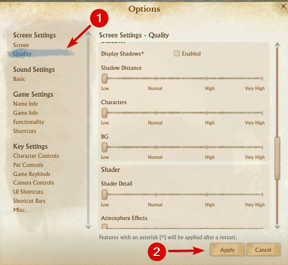 - Передвиньте ползунок Graphics Quality Settings влево до Low.