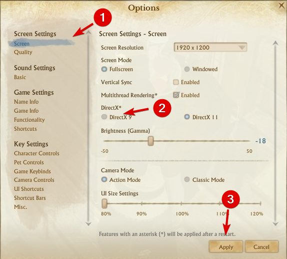 - В игре поставьте графику на Low и переключитесь в DirectX 9.