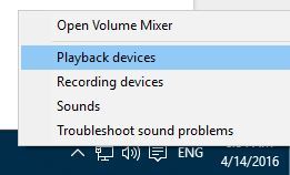 - Нажмите правой кнопкой на значок Динамик в панели задач.
