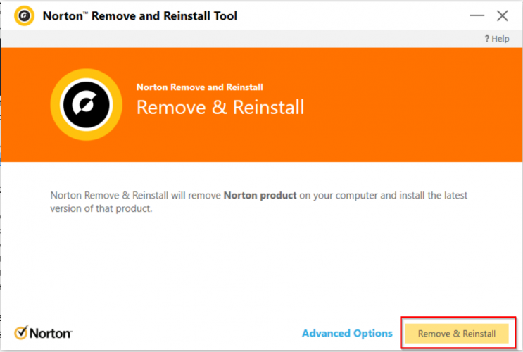 - Запустите Norton Remove and Reinstall и удалите текущую установку Norton.