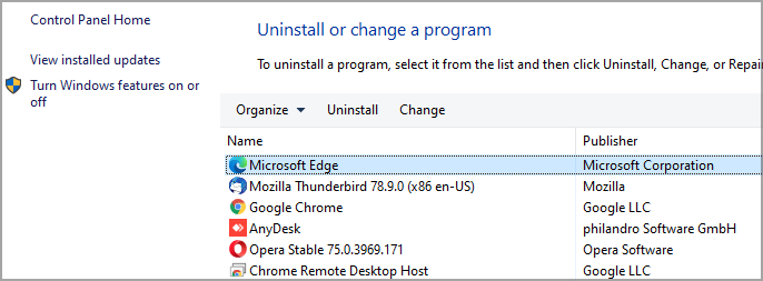 - Откройте Панель управления → Программы и компоненты и выполните удаление.