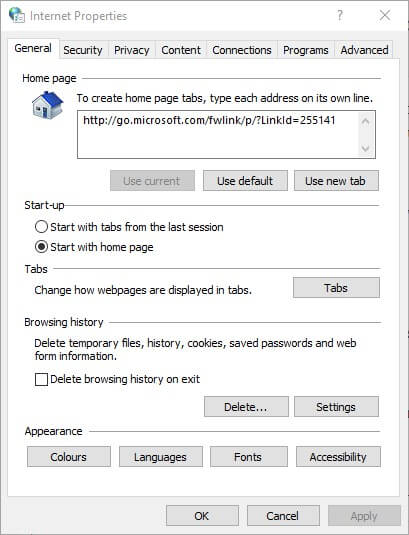 - Введите «Internet options» в строку поиска и нажмите Enter.