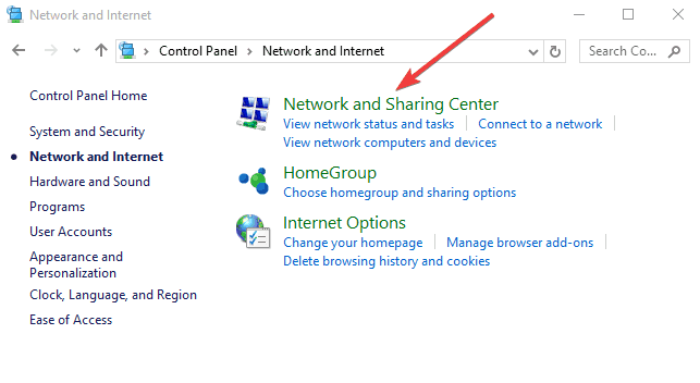 - Откройте Панель управления и перейдите в «Network and Sharing Center».