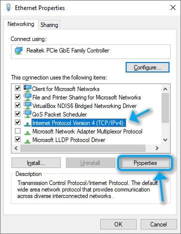 Если это не решило проблему, проверьте свойства сетевого подключения: