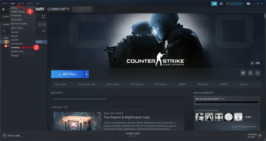 - Инвентарь — список ваших предметов в Steam.