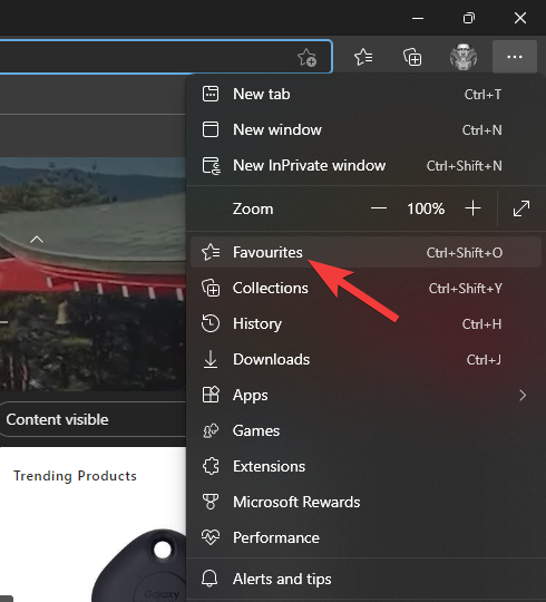 - Наведите курсор на Закладки, затем нажмите Импорт закладок и настроек.