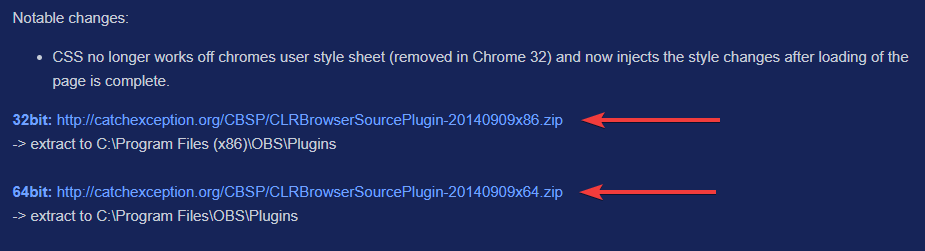 - Загрузите 32- или 64‑битную версию CLR Browser в соответствии с разрядностью вашей установки OBS.