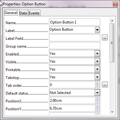 В окне свойств (Control) для каждого поля вы можете установить: