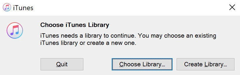 - Когда появится запрос «Choose iTunes Library», нажмите Choose Library.