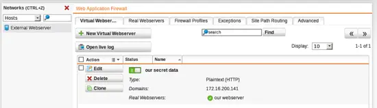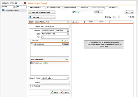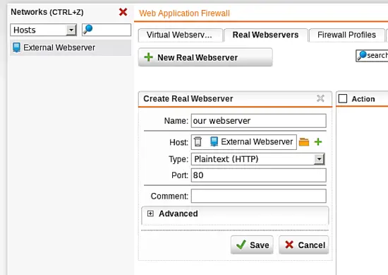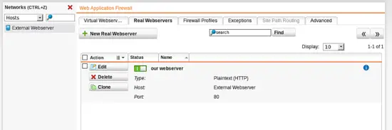 - Webserver Protection → Web Application Firewall → Real Webservers → New Webserver.