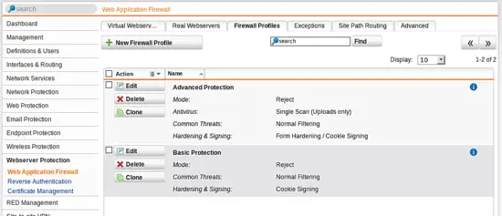 - Webserver Protection → Virtual Webserver → New Virtual Webserver.
