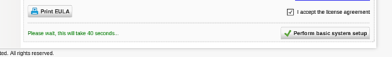 - Нажмите Perform basic setup и подождите ~40 секунд, пока система регенерирует сертификаты и применяет базовую конфигурацию.