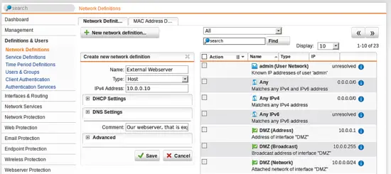 - Тип: Host. Имя: «External Webserver». IP: 10.0.0.10. Save.