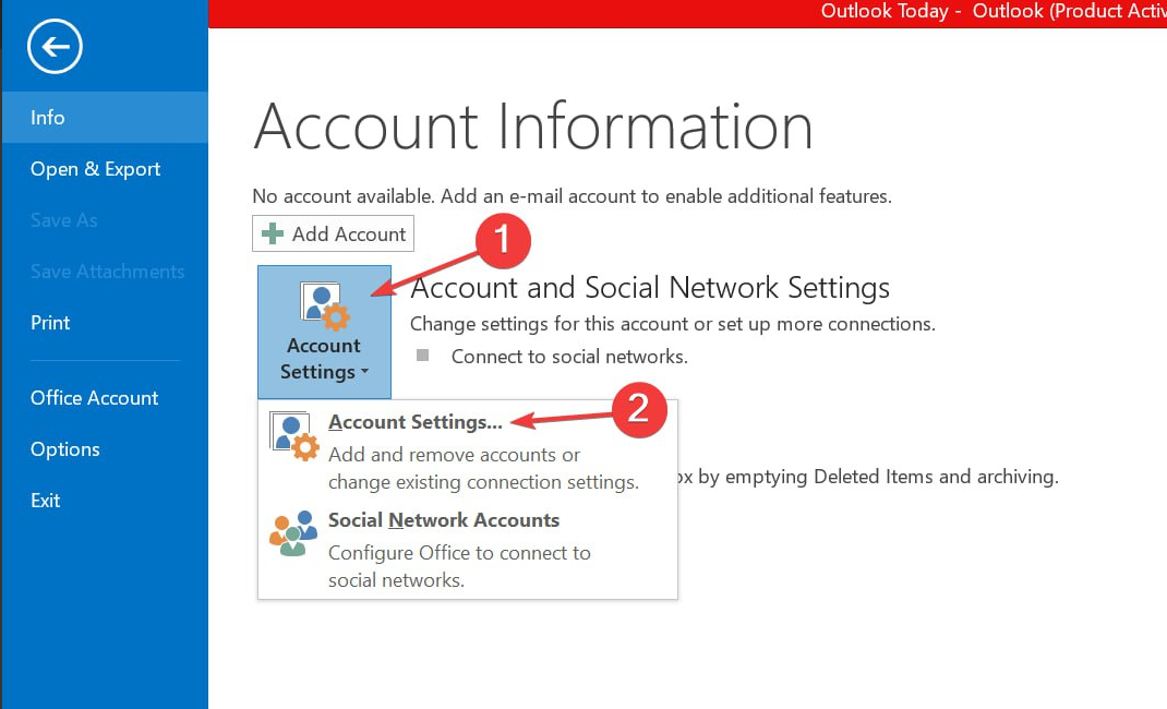 - Откройте приложение Outlook и перейдите на вкладку Файл.