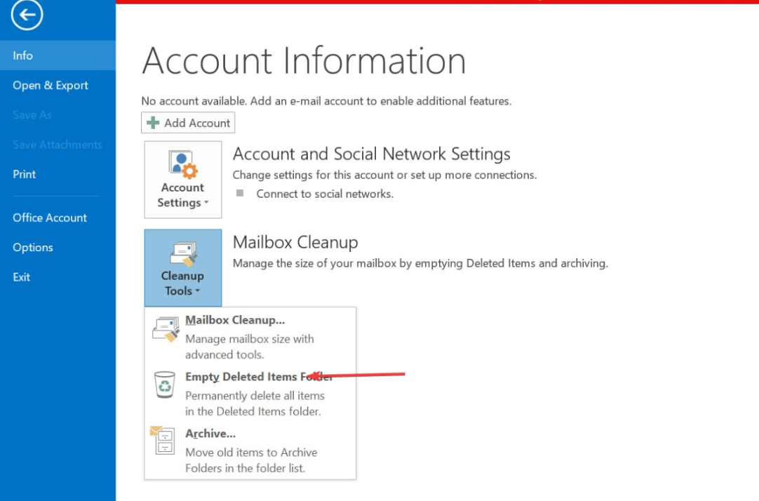 - Нажмите Очистить папку «Удалённые», чтобы окончательно удалить ранее удалённые сообщения.