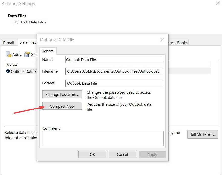 - Compact Now: встроенная функция сжатия PST в Outlook.