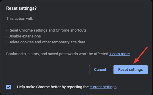 Сброс удалит настройки страницы новой вкладки, поисковой системы и временные данные. Закладки и сохраненные пароли обычно сохраняются.