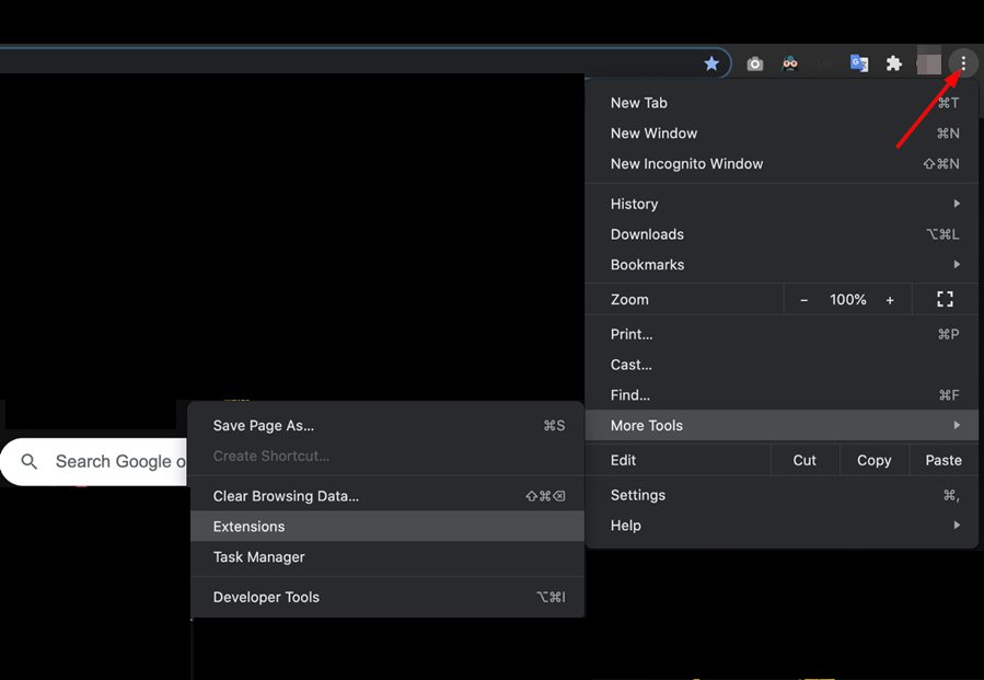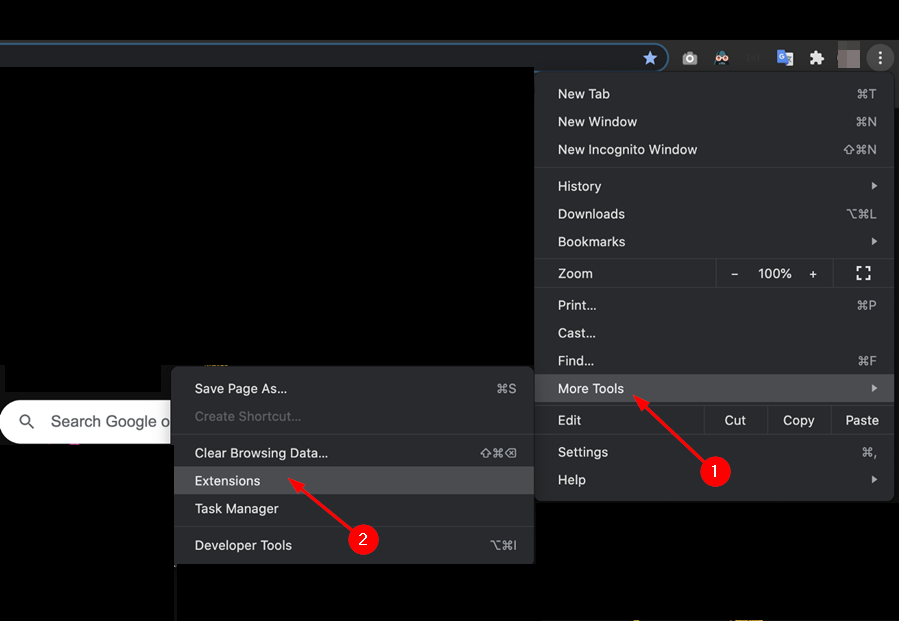 - Выберите «Дополнительные инструменты», затем «Расширения».