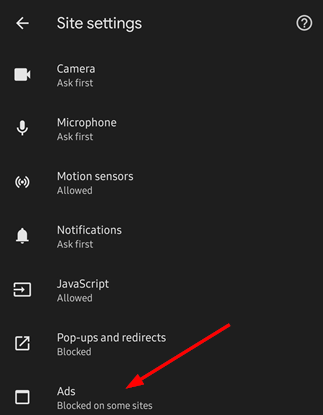 - На Android откройте Chrome → Меню → Настройки → Параметры сайта → Реклама и отключите показ рекламы для сайтов, которые её злоупотребляют.