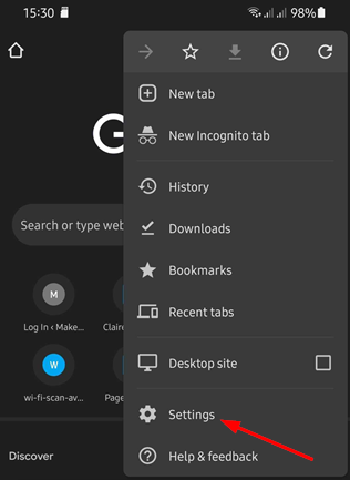 - Откройте Chrome и коснитесь трёх точек в правом верхнем углу.