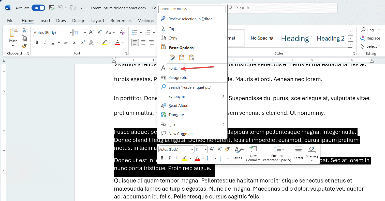 - Щёлкните правой кнопкой и выберите «Шрифт».