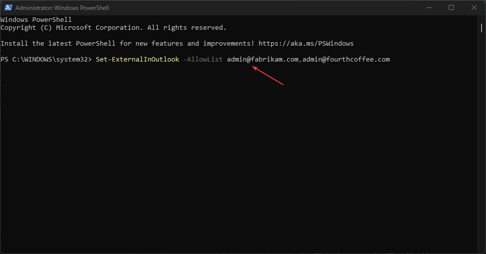 Set-ExternalInOutlook -AllowList "partner@example.com"