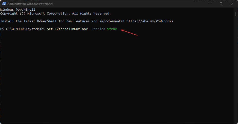 Set-ExternalInOutlook -Enabled $false- Перезагрузите ПК и проверьте Outlook. Изменения могут применяться до 24 часов в зависимости от объёма почты и службы синхронизации.