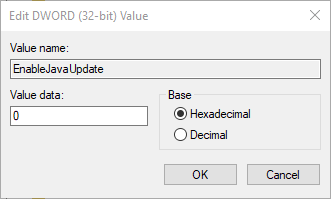 Если уведомления продолжают появляться, можно изменить ключ реестра, который отвечает за автообновления Java.