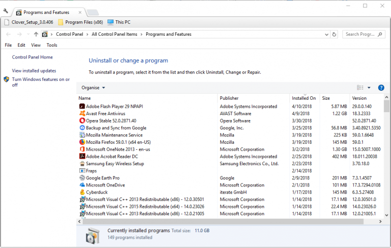 appwiz.cplи нажмите ОК.В списке программ введите “Java” в строке поиска.