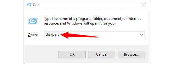 В командной строке введите diskpart и нажмите Enter.