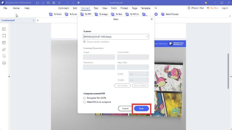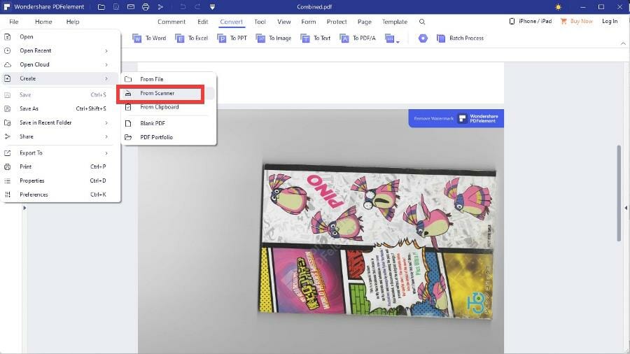 PDFelement также позволяет сканировать напрямую: File → Create → From Scanner; выберите сканер и запустите процесс.