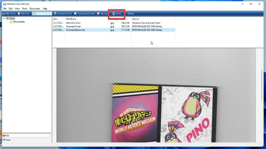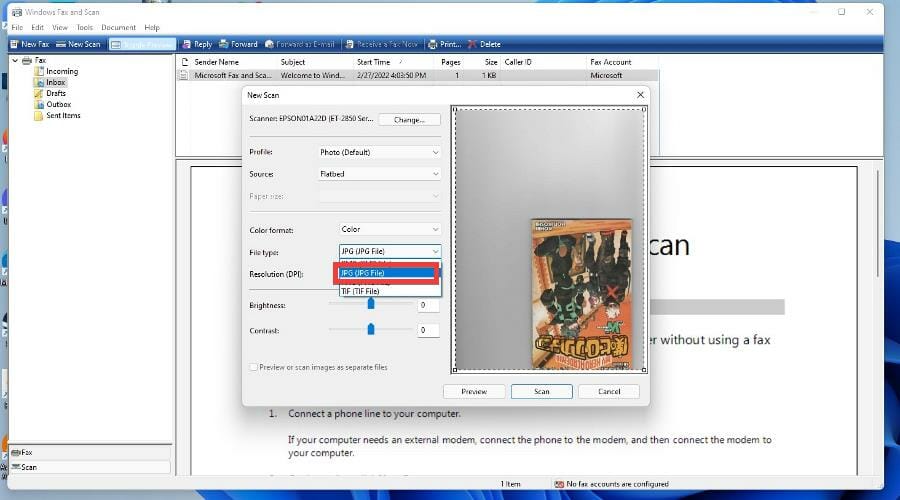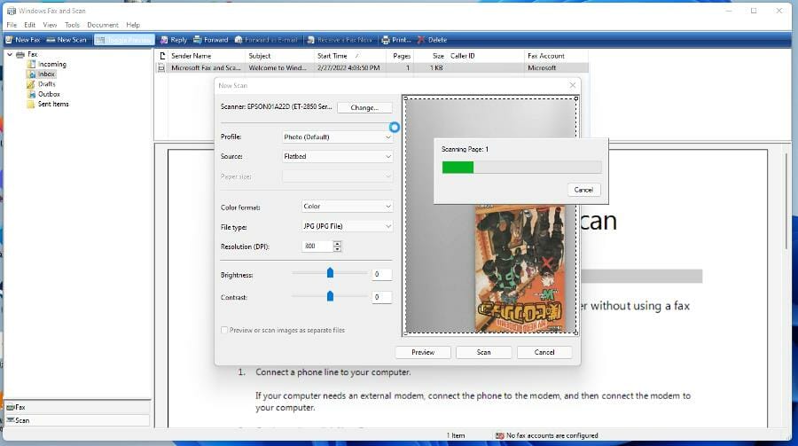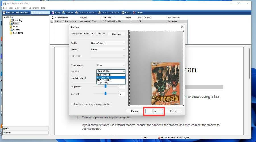 3. Пошаговый скан через Windows Fax and Scan и последующая компрессия