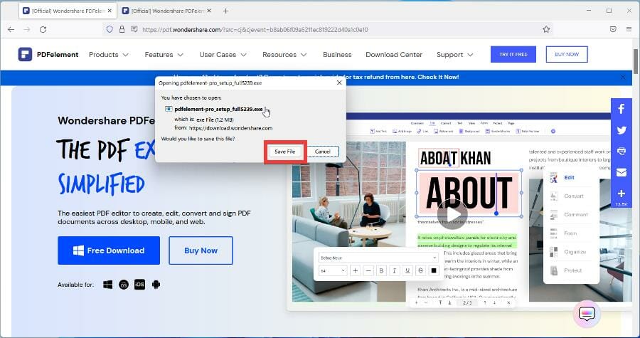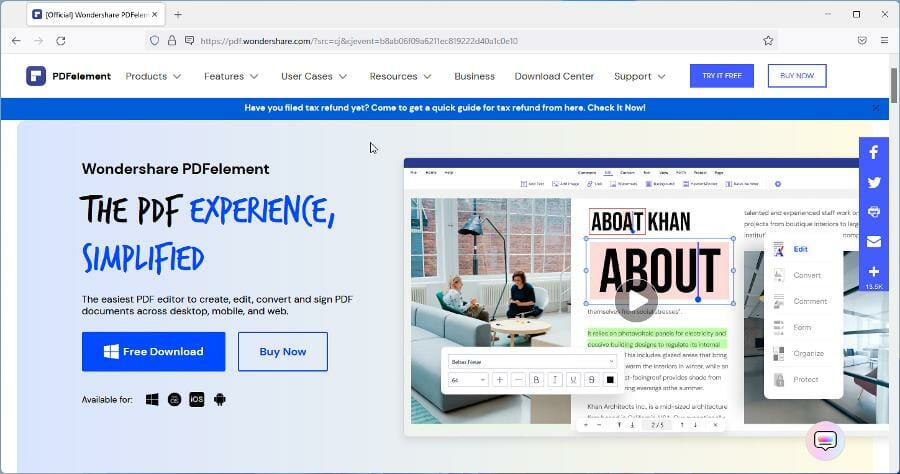 - Перейдите на сайт PDFelement или откройте страницу в Microsoft Store.