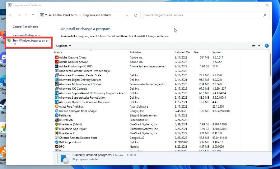 - В левой колонке нажмите «Включение или отключение компонентов Windows».
