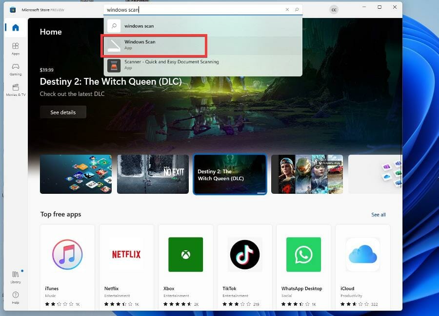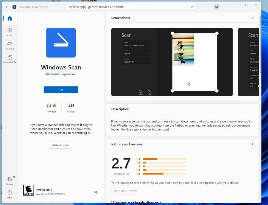 - Откройте Microsoft Store и установите Windows Scan.
