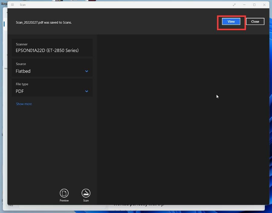 - После сканирования откройте «View» для предварительного просмотра и сохраните PDF.