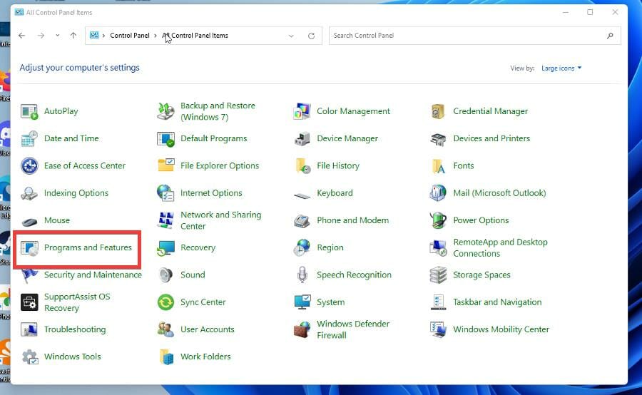 - Откройте «Программы и компоненты».