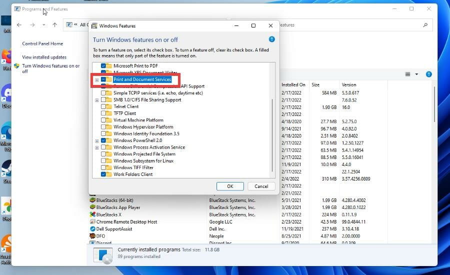 - Отметьте «Windows Fax and Scan» и нажмите «ОК».