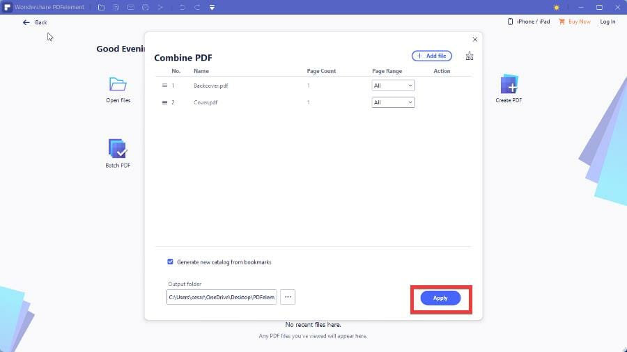 - Откройте PDFelement и выберите «Combine PDF».