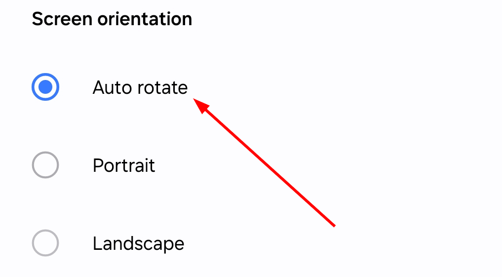 - Нажмите «Ориентация экрана» (Screen orientation), затем выберите «Автовращение» (Auto-rotate) и включите его.