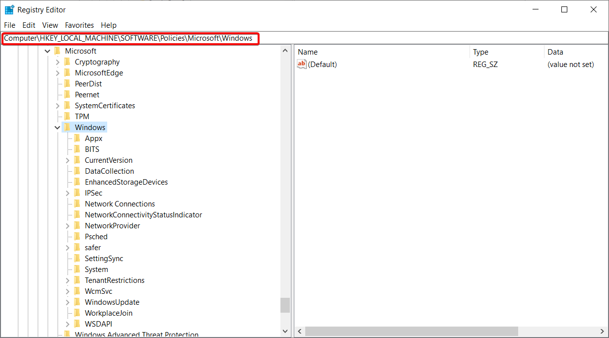 HKEY_LOCAL_MACHINE\SOFTWARE\Policies\Microsoft\Windows
