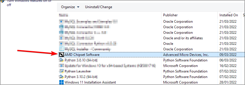 - Найдите в списке записи, связанные с AMD (например, AMD Software) и выберите их.