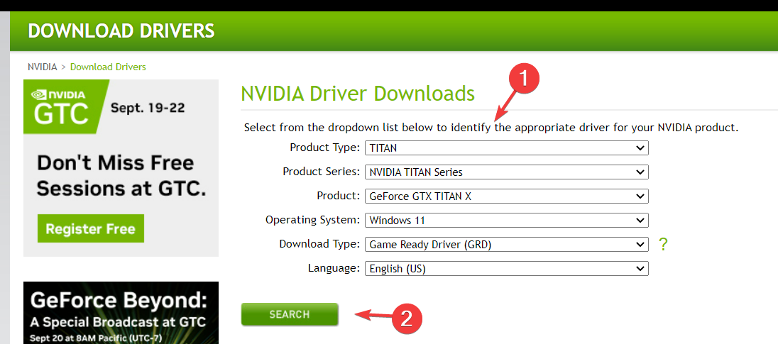 - Перейдите на страницу загрузки драйверов Nvidia (официальный сайт Nvidia).