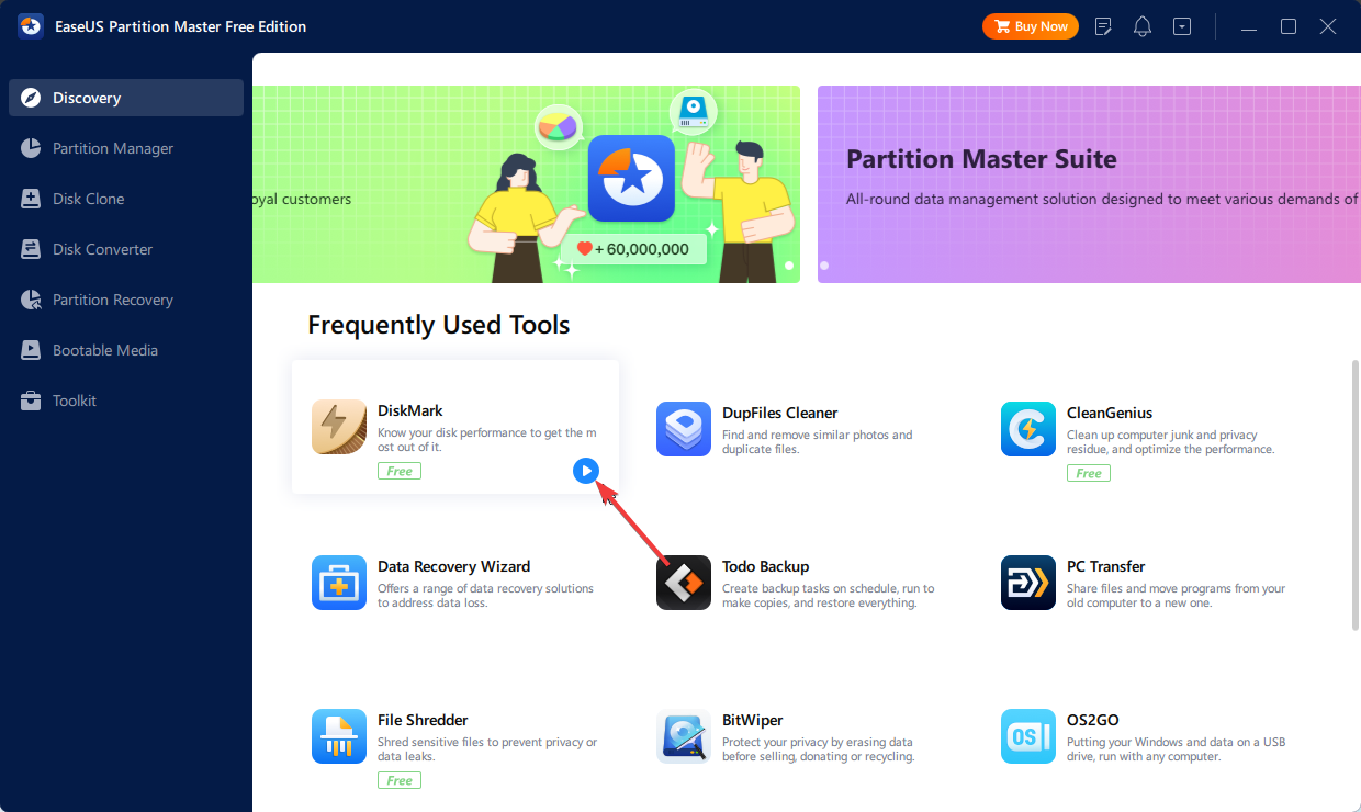 EaseUS Partition Master содержит модуль DiskMark для измерения скорости чтения/записи. Это удобно для домашних пользователей.