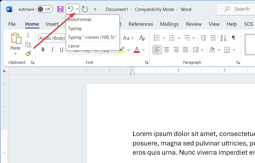 - Нажмите маленькую стрелку вниз рядом с кнопкой «Отменить», чтобы открыть историю отмен.