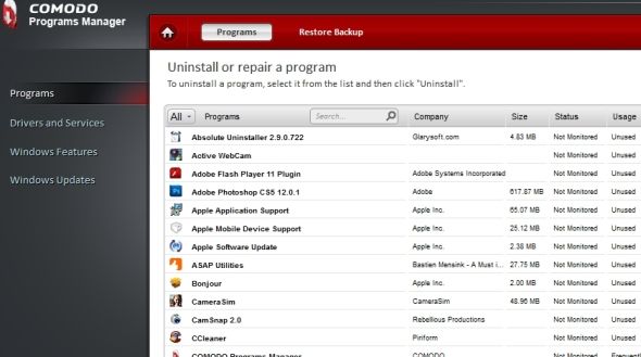 | Comodo Programs Manager | Да | Хорошее | Ограниченно | Есть |