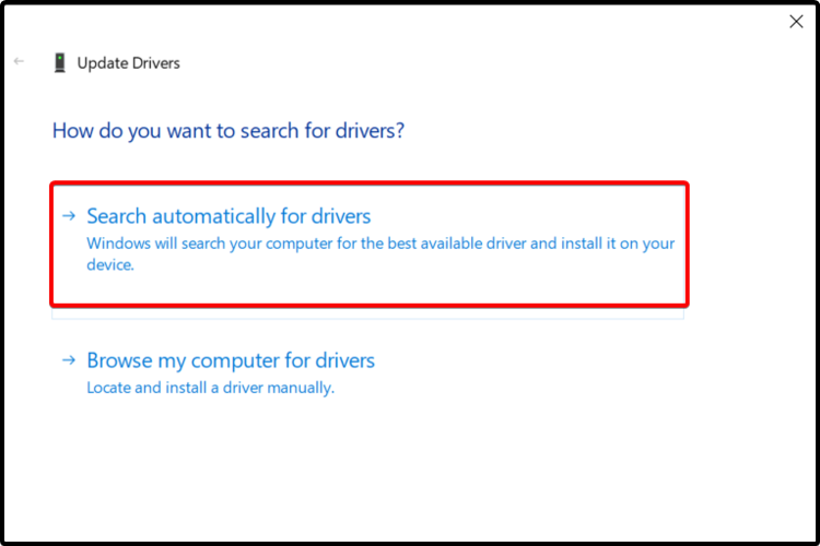 - Выберите Автоматический поиск обновлённого программного обеспечения драйверов.