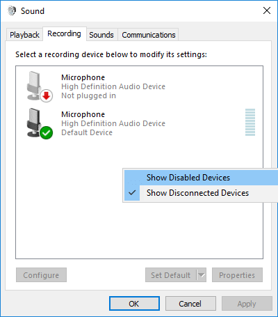 - Включите показ отключённых устройств на вкладке Запись.